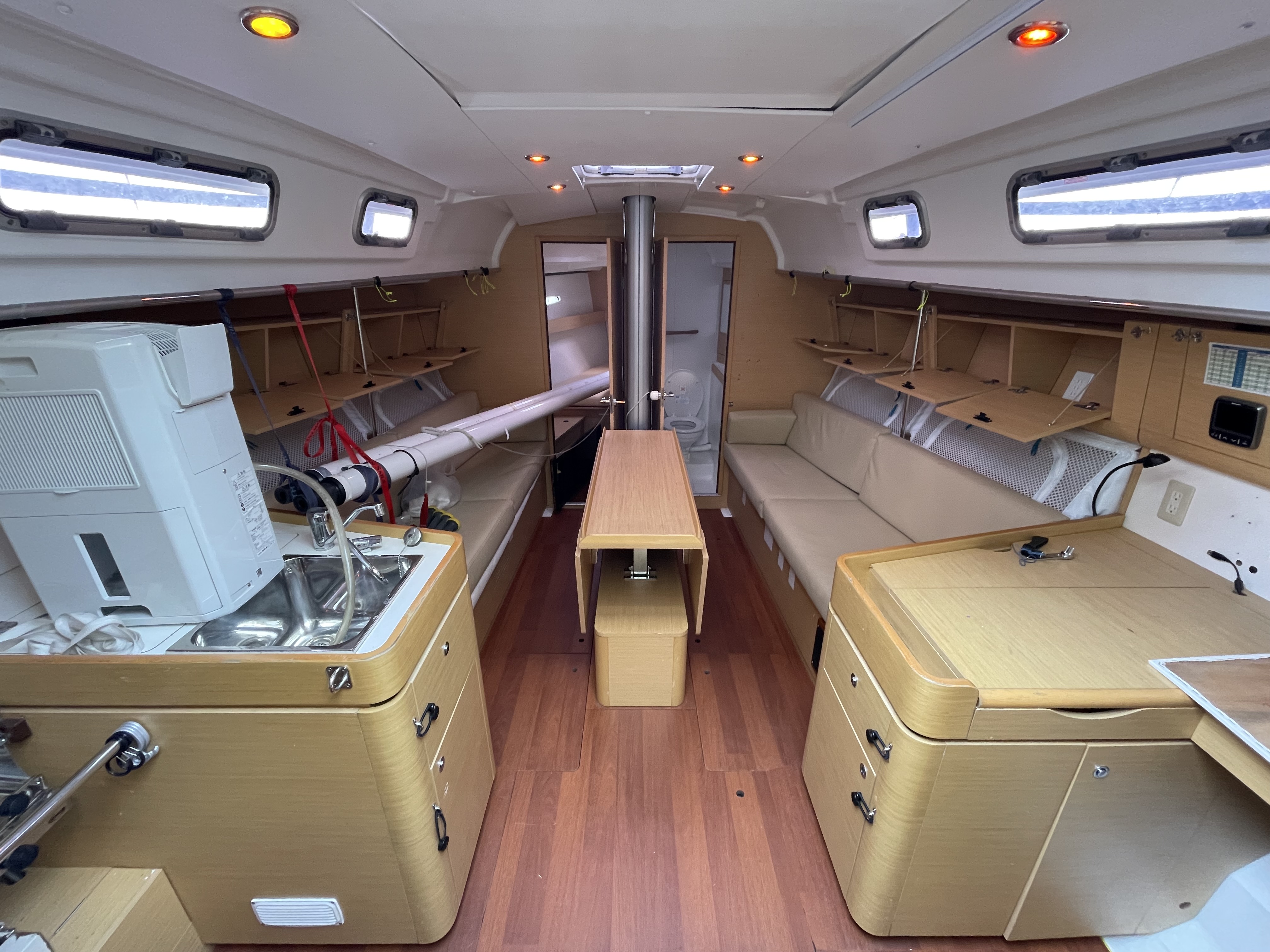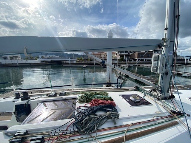 HARKENヘッドフォイル、システムバング、デッキカバー、ブームカバー、ジブシート、スピンシート、フォアガイ、メインシート、バーバーホーラーシステム、ツーイーカーシステム、スピンポール×2、カーボンバウスプリット、スプレーフードフレーム(取り外し中)、船台