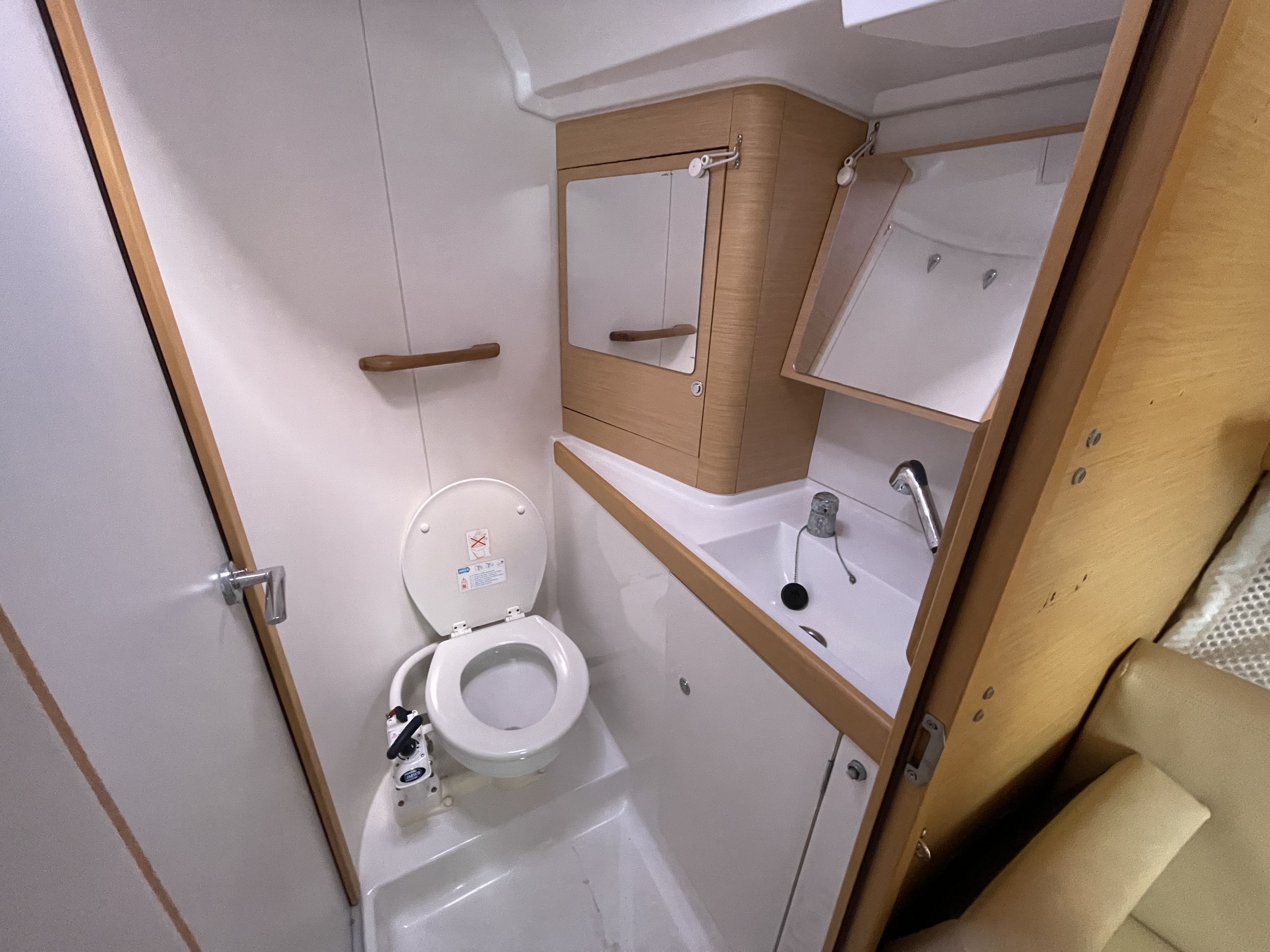 法定安全備品一式(定員分ライフジャケット、アンカー、アンカーライン、もやいロープ、他)、外洋航行対応備品(ライフラフト除く):予備ラダー(ブラケット装備)、音響信号、ストームジブ他