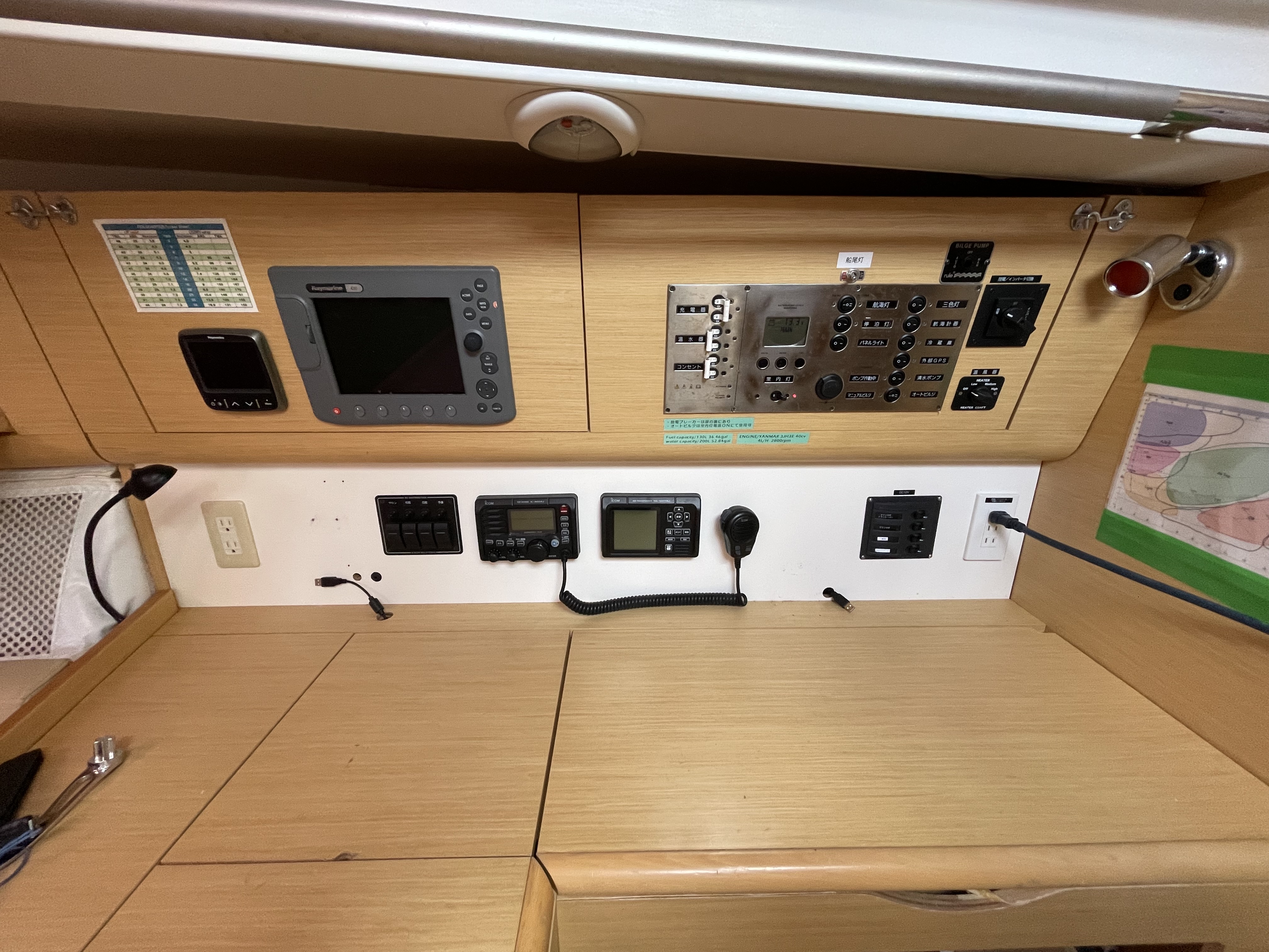 GPS(船内)、レイマリンリピーター(船内)、レイマリンリピーター(マスト3連)、レイマリンリピーター(コックピット)、ホンデックスGPS作動未確認(コックピット)、レイマリン風向・風速/スピード・デプス/オートパイロット、icom