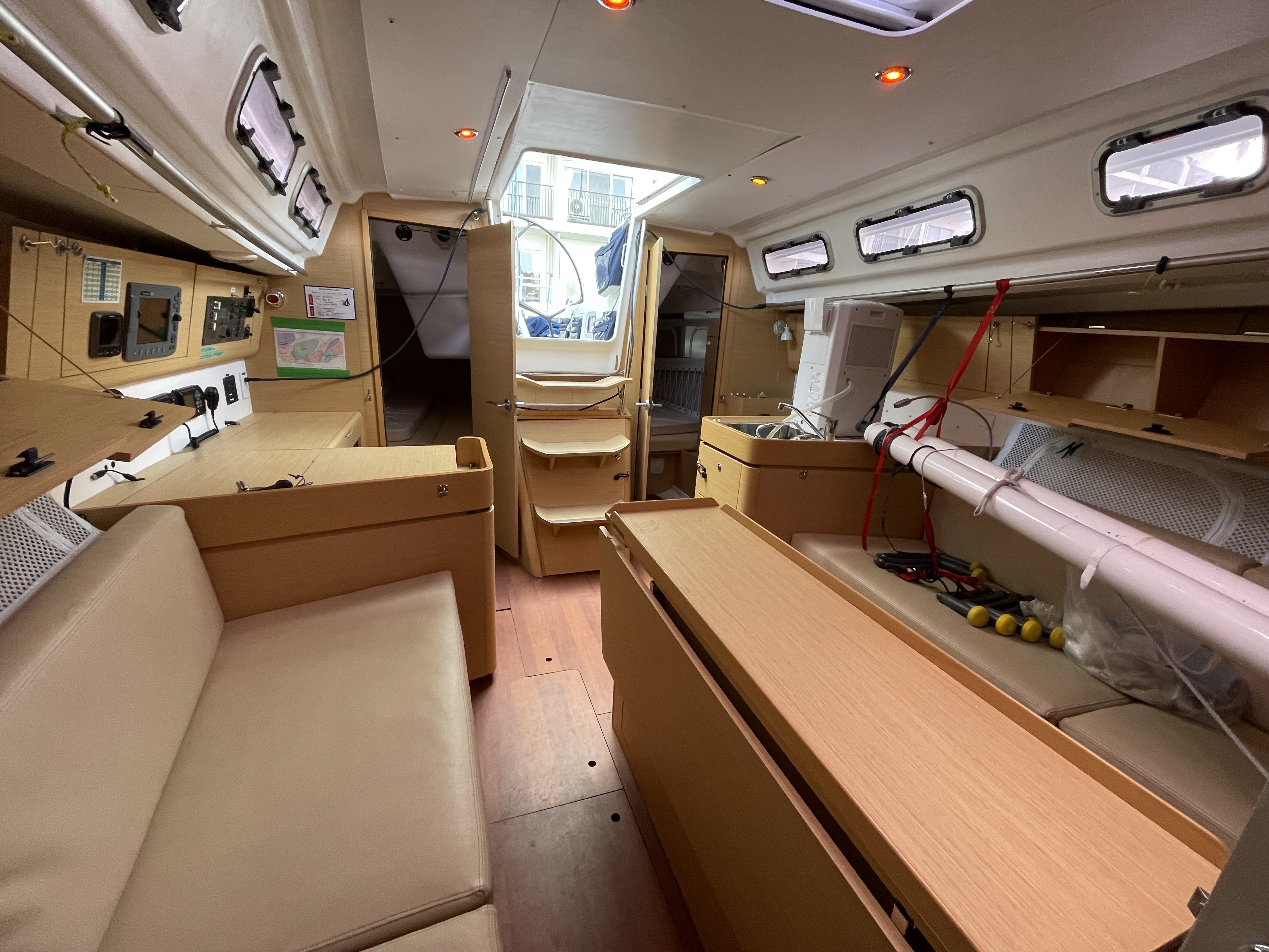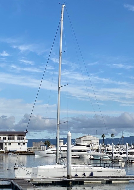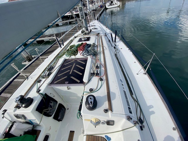 HARKENヘッドフォイル、システムバング、デッキカバー、ブームカバー、ジブシート、スピンシート、フォアガイ、メインシート、バーバーホーラーシステム、ツーイーカーシステム、スピンポール×2、カーボンバウスプリット、スプレーフードフレーム(取り外し中)、船台