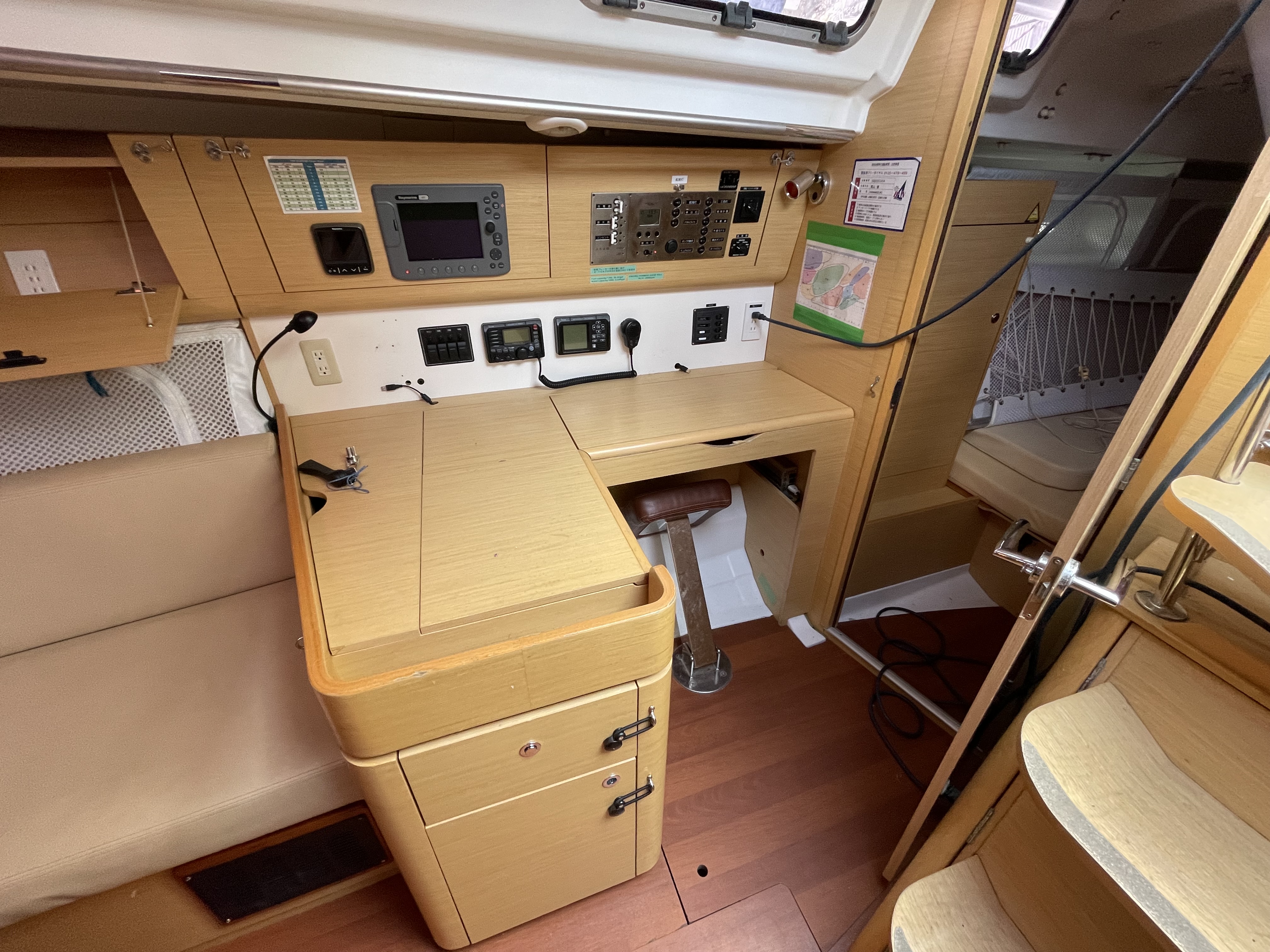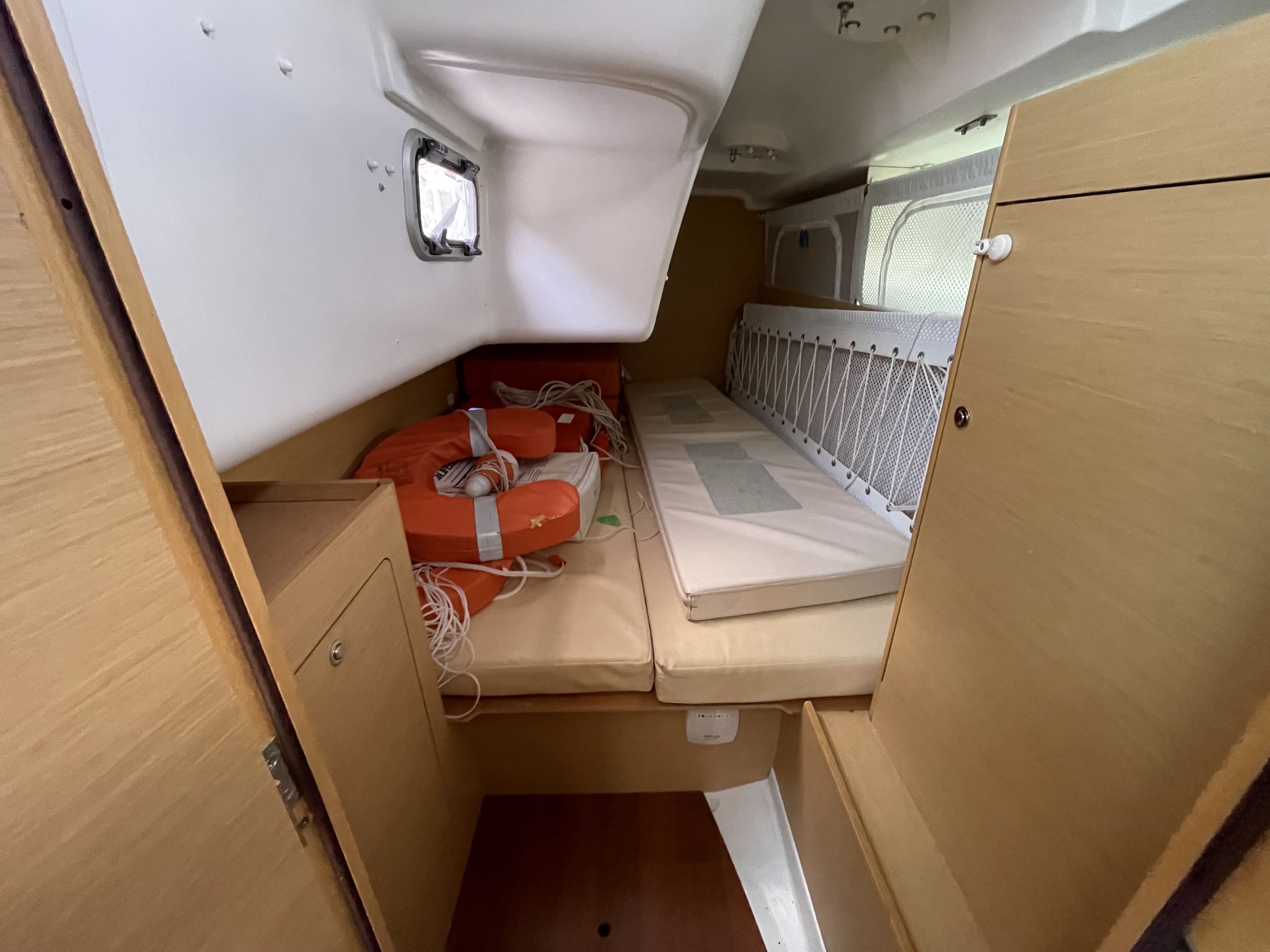 法定安全備品一式(定員分ライフジャケット、アンカー、アンカーライン、もやいロープ、他)、外洋航行対応備品(ライフラフト除く):予備ラダー(ブラケット装備)、音響信号、ストームジブ他